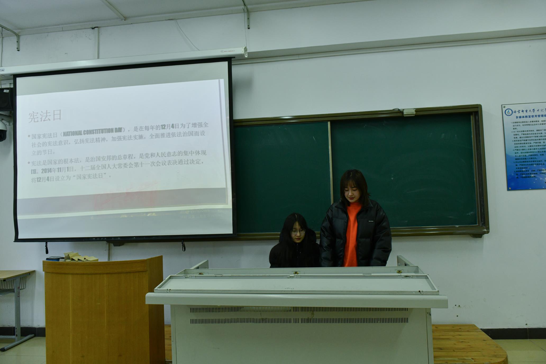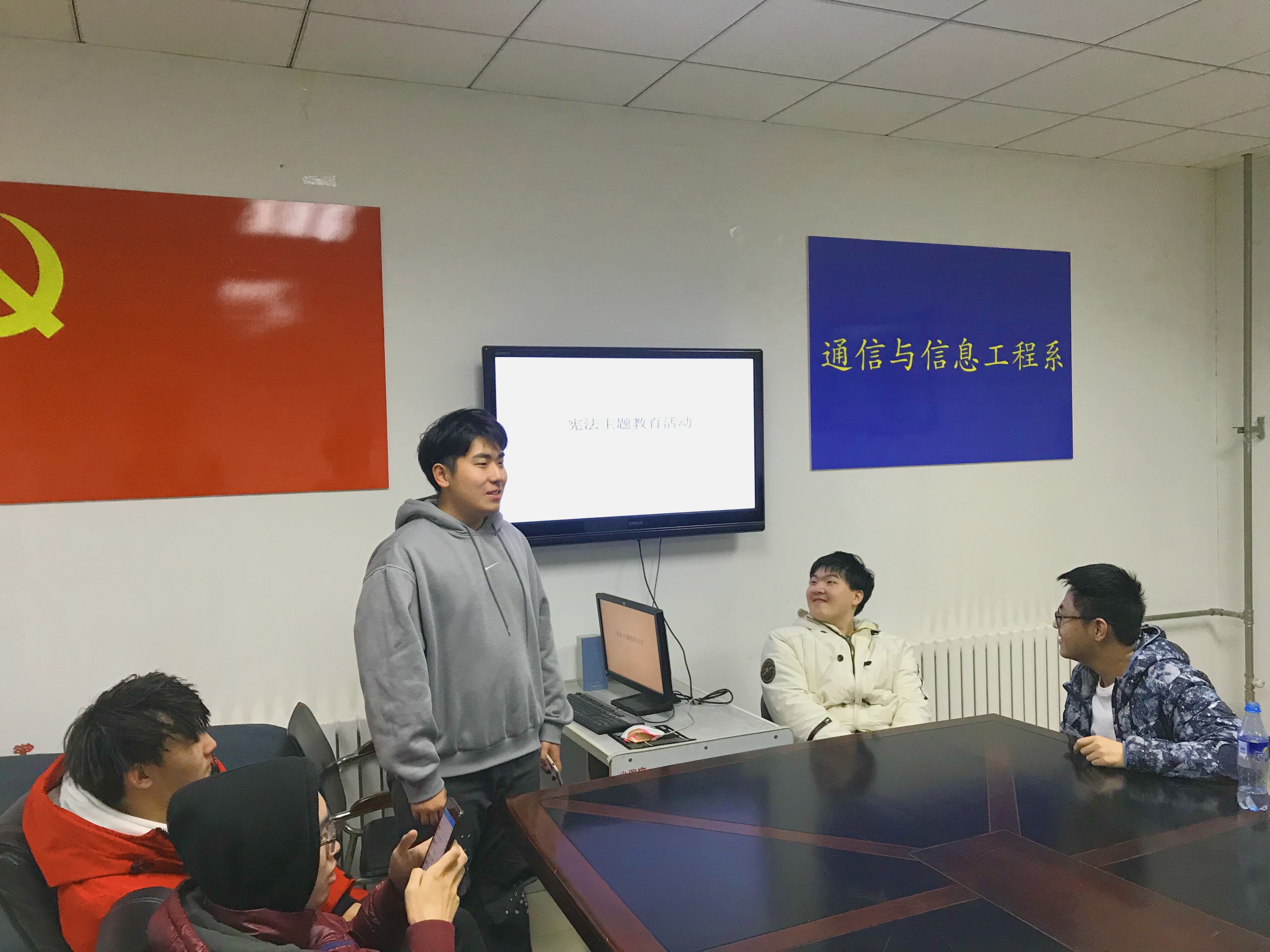 為進一步加大憲法的學習宣傳教育力度,切實增強師生的憲法意識,12月4日至12月8日,2017級通信與信息工程系以班為單位積極開展憲法教育主題班會活動。 班會分為兩個環節,首先由團支書分別帶領各班觀看系列短片,使同學們清晰地認識到,憲法是國家的根本大法,具有最高的法律效力,全國各族人民、一切國家機關和武裝力量、各政黨和各社會團體、各企業事業組織,都必須以憲法為根本的活動準則。深刻領悟到學習憲法、遵守憲法、維護憲法、運用憲法的重要性。第二階段自由發言環節,同學們談到,回顧歷史,改革開放以來黨和國家各項事業取得的歷史性成就和進步,都離不開憲法的全面有效實施,離不開全社會對憲法精神的尊崇。學習憲法、尊崇憲法,大力弘揚憲法精神,才能更好發揮憲法在新時代推進全面依法治國、推進國家治理體系和治理能力現代化中的國家根本法。