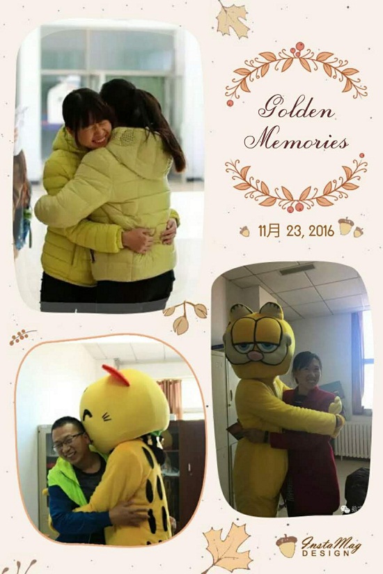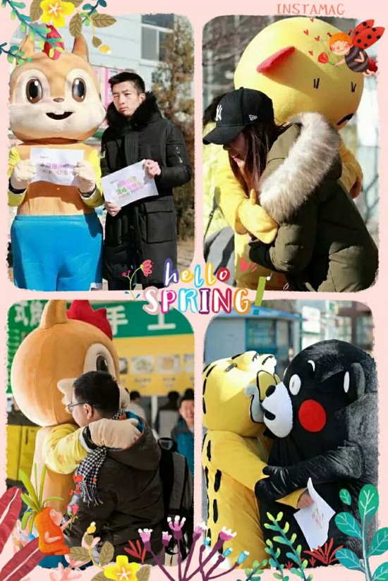 活動伊始,經(jīng)濟管理系的吉祥物在食堂門口,迎接來往人群的擁抱。一個個溫暖的擁抱,一張張燦爛的笑顏,讓寒風也變得好像有了溫度。同學們來到明德樓,認真的抱抱老師,感謝他們的諄諄教誨;來到宿舍樓,真誠的抱抱宿管阿姨,感恩他們無微不至的關(guān)懷;來到食堂,深情的抱抱食堂大媽,謝謝他們的無私奉獻……活動得到了師生們的積極參與,相互擁抱的人越來越多,也讓大家的心里倍感溫暖。