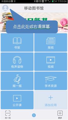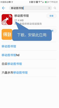在手機應用市場中搜索“移動圖書館”,并下載、安裝