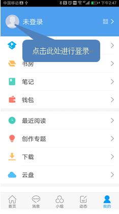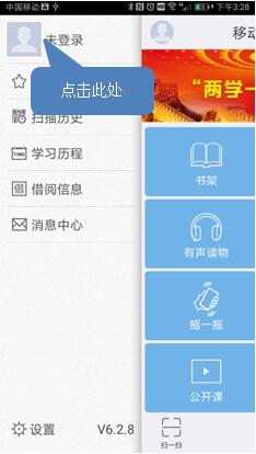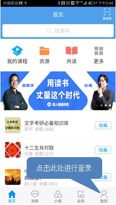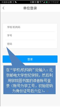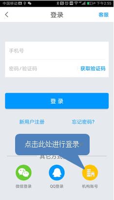下載并安裝完成后,手機屏幕上會出現“學習通”的快捷方式,雙擊此快捷方式,打開該應用。隨后按照下圖提示進行登錄。