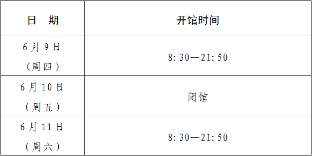 注:6月12日起正常開館