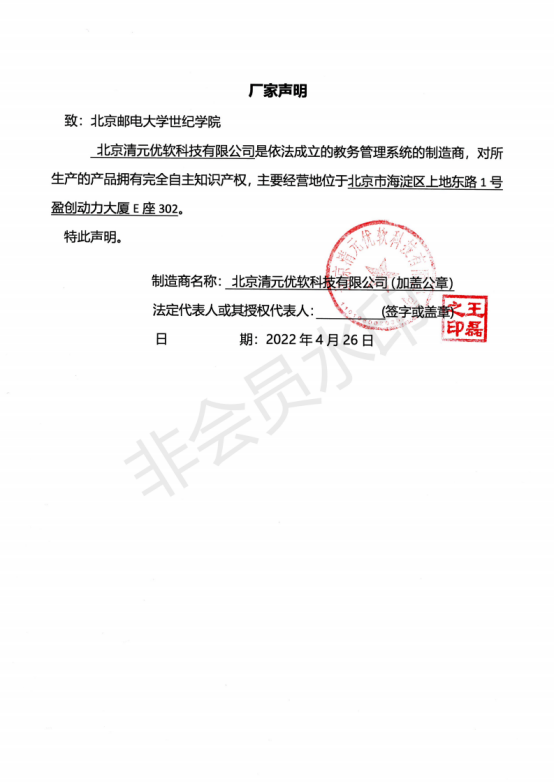 北京郵電大學世紀學院教務系統升級及系統集成軟件項目采用單一來源方式采購,擬由北京清遠優軟科技有限公司供給,總金額380000元具體產品技術指標為: